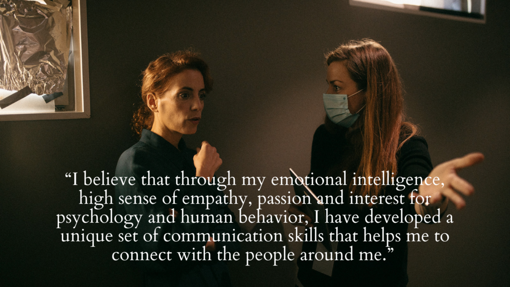 Louise is a brave and talented writer/director with a strong voice who loves to dive into complex matters. She gifted me with “Cristian” a character who made me grow as a person – a character with a thousand shades and full of depth and life. Louise is kind-hearted and shows both leadership and sensibility.»